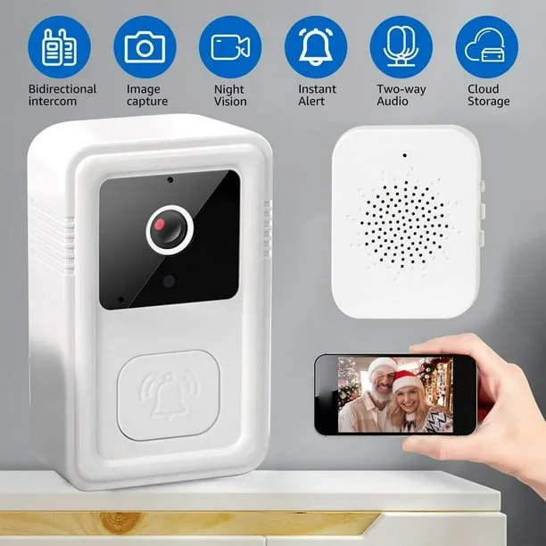 "خليك عارف مين على بابك حتى وانت مش في البيت! جرس الباب الذكي بالكاميرا هيخليك تشوف وتسمع وترد من موبايلك – أمانك دلوقتي بلمسة!" 💡📱