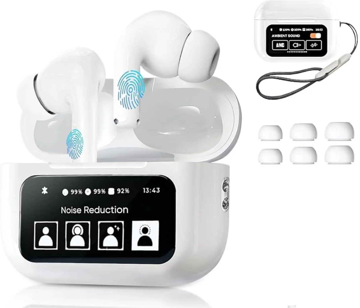استمتع بعالم من الصوت النقي والتقنيات الذكية مع سماعة A9 الذكية! 💫 مزودة بشاشة لمس LCD متعددة الوظائف وتقنية عزل الضوضاء المتطورة، تمنحك تحكماً كاملاً وصوتاً غامراً في كل لحظة 🔊💡